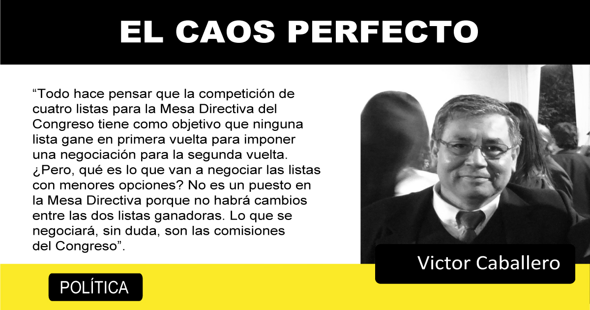 Todo hace pensar que la competición de cuatro listas para la Mesa Directiva del Congreso tiene como objetivo que ninguna lista gane en primera vuelta para imponer una negociación para la segunda vuelta. ¿Pero, qué es lo que van a negociar las listas con menores opciones? No es un puesto en la Mesa Directiva porque no habrá cambios entre las dos listas ganadoras. Lo que se negociará, sin duda, son las comisiones del Congreso.