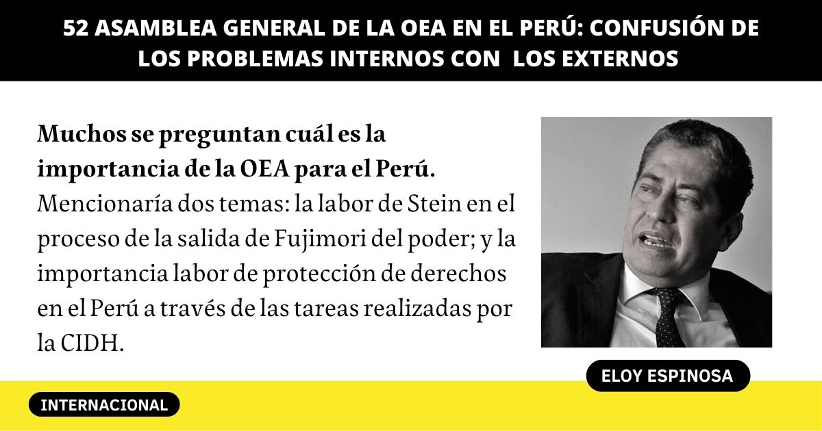 Muchos se preguntan cuál es la importancia de la OEA para el Perú. De primera impresión, mencionaría dos temas: la labor de Stein en el proceso de la salida de Fujimori del poder y la vuelta a parámetros democráticos; y la importancia labor de protección de derechos en el Perú a través de las tareas realizadas por la Corte y la Comisión Interamericana (el Perú ha sido el Estado que ha sido el Estado que ha tenido más condenas ante la Corte y más recomendaciones de la Comisión).
